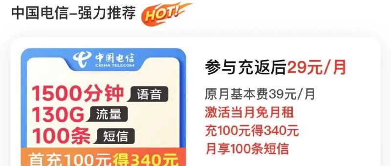 消息3:宁夏电信星卡19元版本,可参加预存100元话费,20元240G每个月,两年后自动续订。活动链接https://yx.nx.189.cn/m\_lx2020xhzw/page\_xkCard19Flow.do ‌‍‎   【有福利已同步发群】
