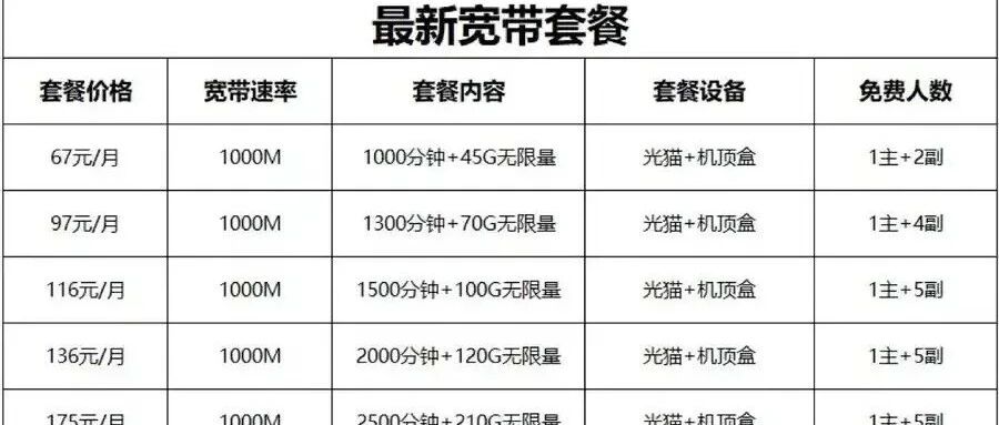 🉑开4张副卡,3条1000宽带免费用