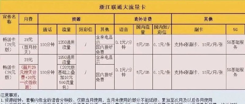 浙江老用户可改:29元135g!