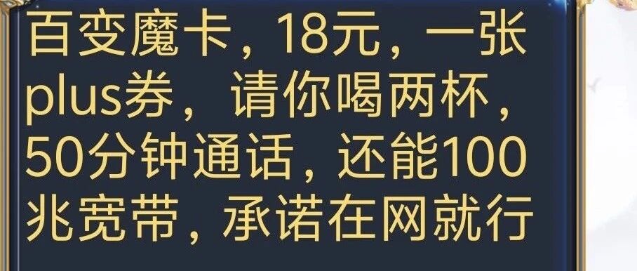 最新爆料:北京移动百变魔卡,18元,一张plus券,请你喝两杯,50分钟通话,还能100兆宽带,承诺在网就行