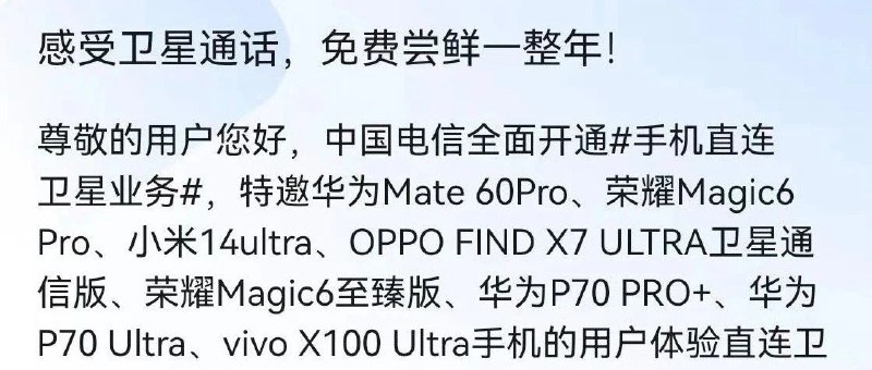 卫星通讯:支持该功能的手机免费一年!