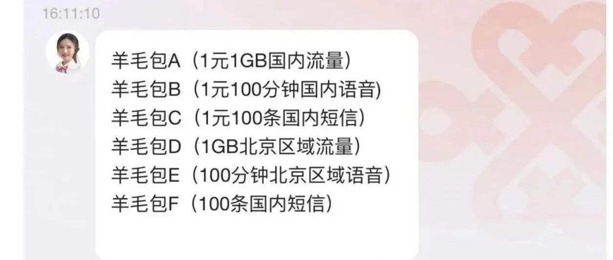 内蒙古联通卡BUG业务,每个月N选一,不和谐可领取一年